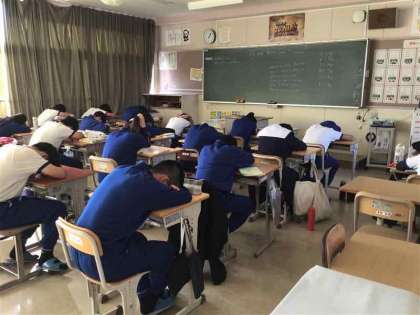 仮眠を取り、午後の集中力を向上させること等をねらい、保健給食委員会が「みんみんタイム」と称する企画を実行しています。数日実行して、効果を検証していく予定です。