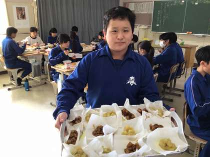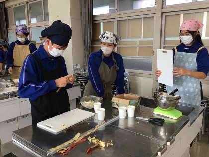 2年生は家庭科で調理実習を行いました。サツマイモを使って鬼まんじゅうを作りました。学んだことを生かして、家庭で作ってみるのもいいですね。