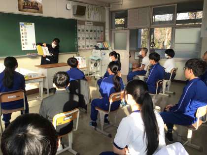 地域学校共働本部による読み語りが定期的に行われ、生徒が本に触れる貴重な機会になっています。季節に合わせた選書を心がけてくださり、朝からあたたかい気持ちになれます。
