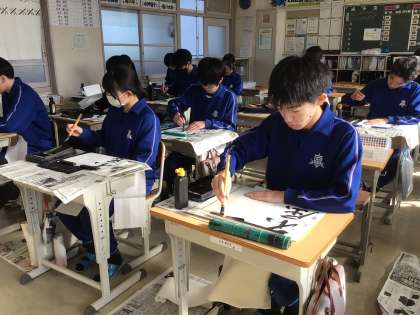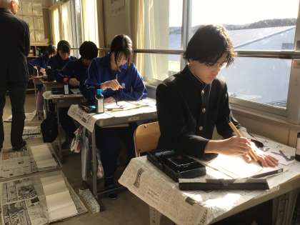 書写ボランティアの中根様をお招きしての2度目の書き初め練習です。
