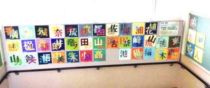 2年生は、美術の授業でレタリングに取り組みました。明朝体とゴシック体の特徴を理解してデザインすると共に、美しい配色の工夫をして丁寧に色を塗って仕上げました。