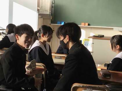 3年生は、入試の面接を意識して、「自分の強み」をテーマに対話トレーニングを行いました。自分でアピールするだけでなく、聞き手からも自分の強みを教えてもらうことで自信にもつながったようです。素敵な笑顔があふれていました。