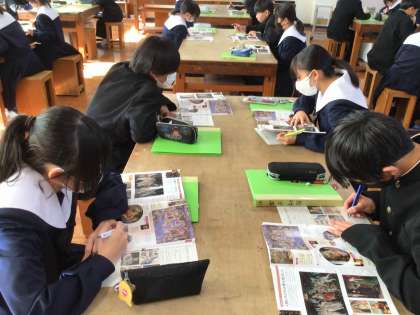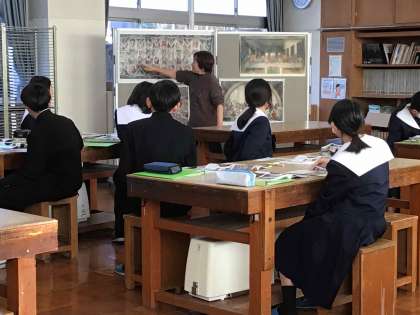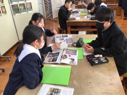 1年生の美術では鑑賞の学習に取り組んでいました。ルネサンス期の作品について学び、改めて「すごさ」を感じていました。