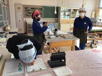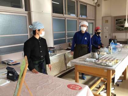 3・4組で計画的に学習を積み重ねてきた自立活動のカフェ学習のまとめをしました。清潔な身なりで行う調理や接客を通して、手先の器用さやコミュニケーション力を高めることができました。それぞれが自分の目標をもち、意欲的に活動しました。
