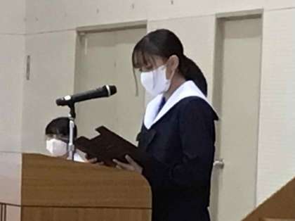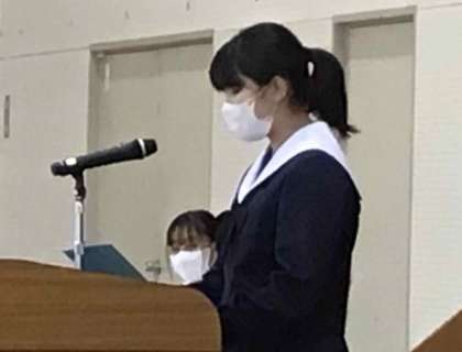 明日から冬休みです。全校集会を開き、頑張ってきた歩みを讃えあったり、冬休みの過ごし方について確認したりする時間を設けました。各学年の代表者による意見発表や、受賞した作文の発表が行われました。
