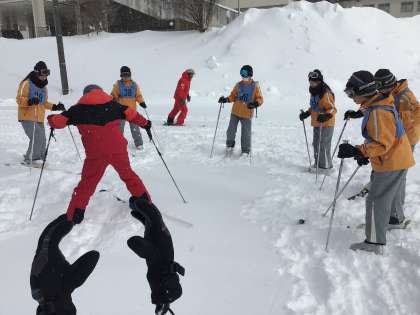 人生初のスキーにおっかなびっくりの生徒もいましたが、フカフカのパウダースノーに果敢に突進していく猛者も見られました。