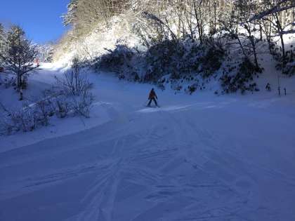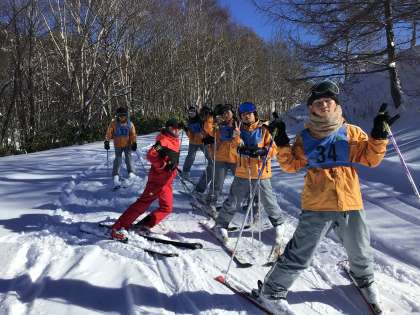 9日の午前中のスキー研修です。天気も良く、ゲレンデの雪も最高のコンディションです。