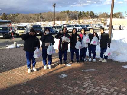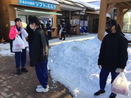2年生を乗せたバスは石野中学校へ向かっています。途中、ひるがの高原SAでトイレ休憩とおやつタイムをとりました。手持ちのおこづかいの中から、おやつと家族へのお土産などを購入しました。