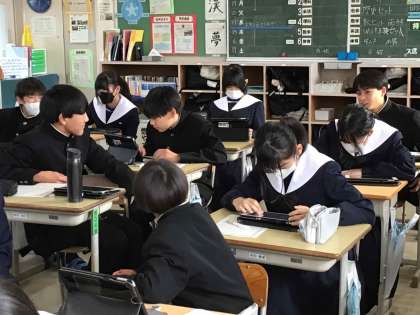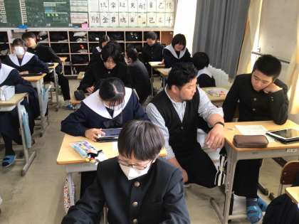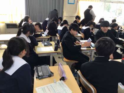 1年生は来年度の職場体験学習に向けて、体験したい職業を考えたり、事業所への行き方を考えたりしました。公共交通機関を利用した経験がない生徒や、自転車に乗れない生徒もいるようで、問題をどう解決しながら体験学習を進めるか知恵を出し合っていました。