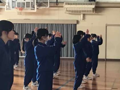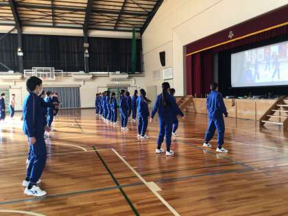 2年生の体育科の授業では、ダンスに挑戦しています。動画を見ながら、体の動きを考えて実際に動くのは難しいようです。頭も身体も使いながら、練習していました。