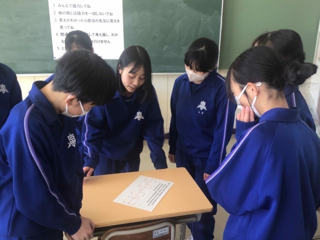3年生が全校で楽しめるようなレクリエーションを企画、実行しました。3学年が混じったグループで謎解きをしたり伝言ゲームに挑戦したり、楽しい時間を過ごしました。
