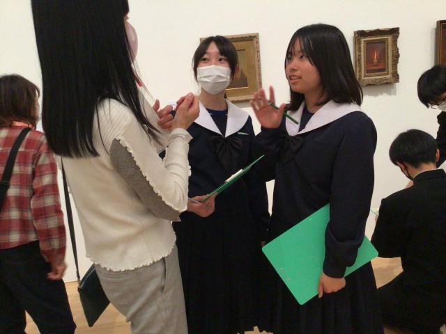 2年生は、昼食を済ませて美術館の見学をしています。美術の授業での学びを生かして鑑賞しています。