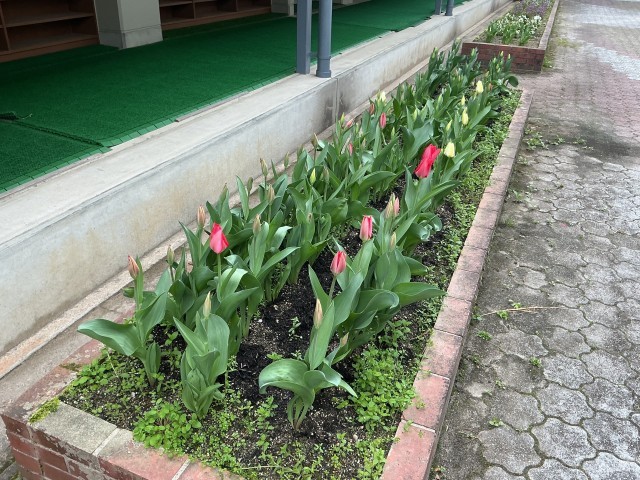 体育館前のチューリップも咲き始めました。