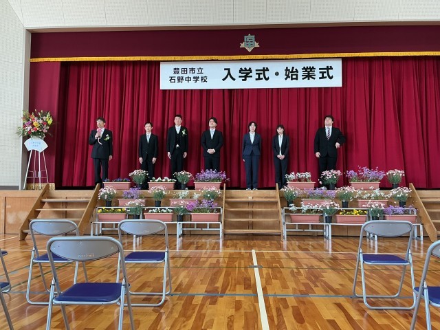 入学式に先立ち、今年度石野中学校に新しく赴任した職員の「着任式」が行われました。