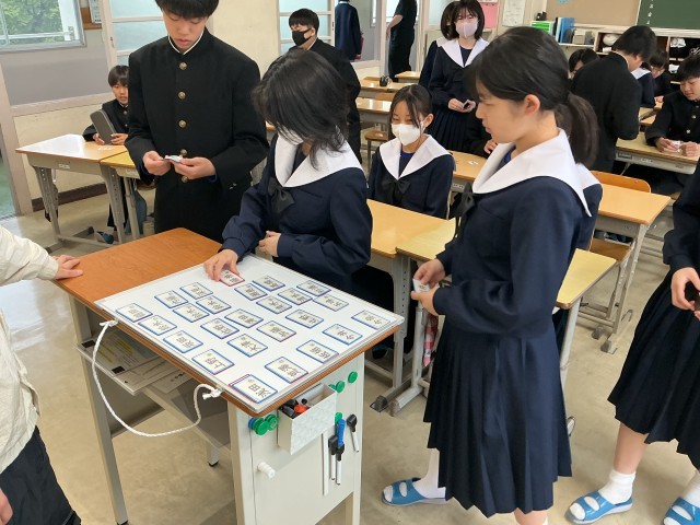 2年生の最初の学活は、教室の環境整備をしました。授業で使う「ネームタグ」を更新して、新年度の授業に備えています。