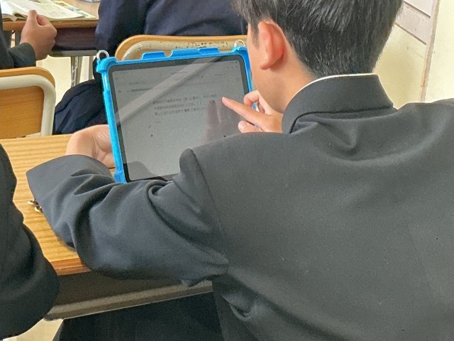 年度初めは学力テストがあります。直前の朝学習の時間の3年生は、教科書やワーク、デジタル学習ドリルなど、それぞれの方法で教科の確認をしていました。集中している様子はさすが3年生だと感心しました。