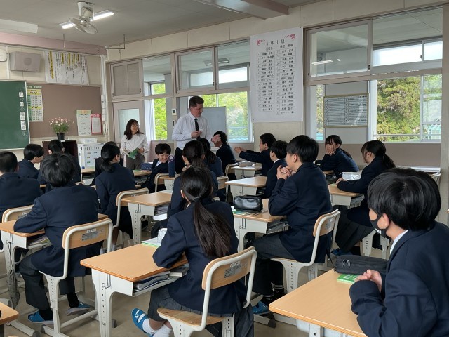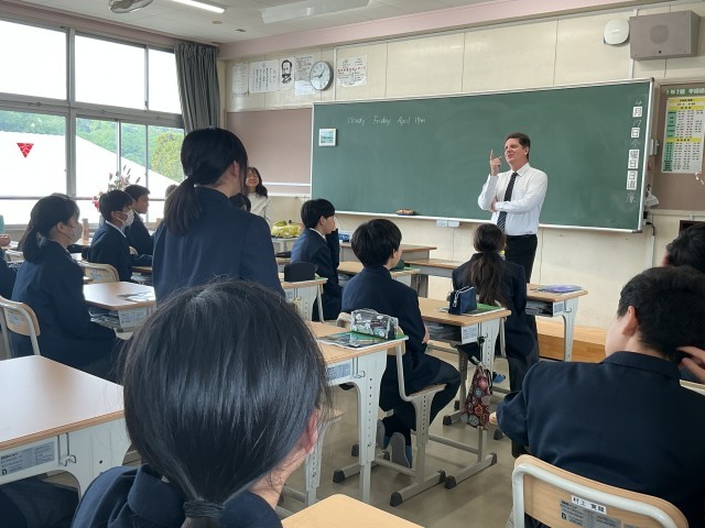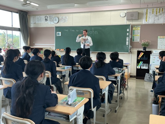 巡回してくるALT(Assistant Language Teacher)が本日来てくれました。大変明るい自己紹介をされた後、授業を英語科教員と一緒に行ないました。すぐに打ち解け、楽しく英語が身につく期待が高まりました。