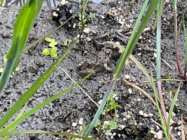 2年生の田起こしの最中、田んぼに白い泡上のものを見つけました。疑問に思ってみていると、それがカエルの卵だと教えられました。よく見てみるといろんな生き物が田の中にいました。カエルを見つけ追いかけようとしている生徒もいました。温かくなり、初夏に向けた命が動き出している様子が見られました。