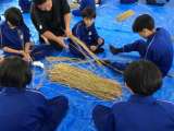 アルペン学習の「棒の手」は、衣装を身につけて体育館舞台とフロアで演武をしました。...