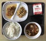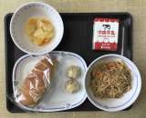 今日の献立は、米粉パン、炒めビーフン、ミックスフルーツ、小籠包、牛乳、でした。エ...