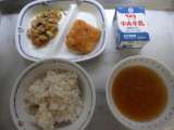 今日の献立は、オニオンスープ、きんぴらピラフ(麦ごはん)、たらフライ、牛乳 でし...