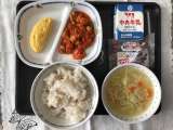 今日の献立は、クリスマス献立で、パスタスープ、チキンライス、オムレツ、ガトーショ...