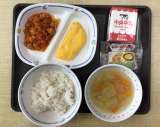 今日の献立は、「クリスマス献立」で、麦ごはん、パスタスープ、チキンライス、オムレ...