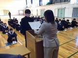 明日12月24日から始まる冬季休業前に全校集会を行いました。表彰伝達と、2年生の...