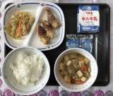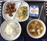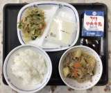 今日の献立は、ピリッと厚揚げ、華風あえ、餃子、ごはん、牛乳 でした。エネルギー:...
