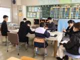 3・4組の生徒が、お楽しみ会を開きました。先生に関するクイズを学習用タブレットで...