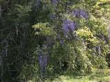 石農米を育てる田んぼの東側の山に、薄紫色の藤の花が綺麗に咲いています。新緑の淡い...