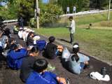 石野中学校伝統のソーランをじっと見つめた1年生。先輩に優しく指導してもらいました...