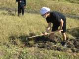 説明を聞いた後は、班ごとに田んぼに分かれて、田おこしを行いました。