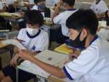 テスト勉強に励む、1年生の英語の授業の様子です。