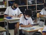4組では、3年生の生徒のみがテスト勉強を行っていました。(2年生が体育の授業に参...
