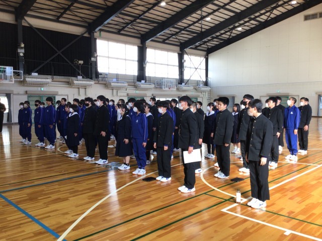 定期テストを終えた13日、卒業を祝う会の決起集会が催されました。これまでは、2年...