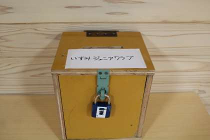 応募ボックスは、ジュニアクラブの夏祭り実行委員の生徒が手作りしてくれました!