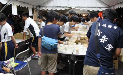8月12日に浄水町区民会館で行われた夏祭りに、ジュニアクラブの中学生がボランティアで参加しました。