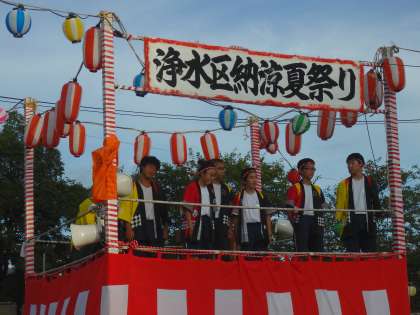 櫓の上で太鼓を叩くのは、きっと緊張したことでしょう。