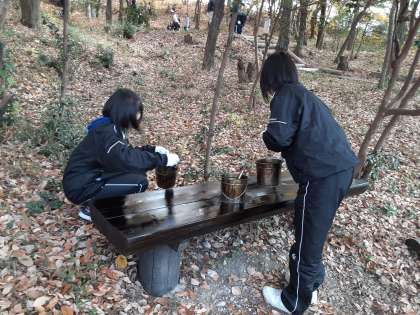 また、枯れ葉を掃いたり、どんぐりを拾い集めたりしました。