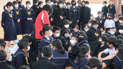 11日(火)の午後、豊田市交通安全センターの方を講師に迎えて、1年生が自転車講習会を実施しました。日頃、登下校している場所等の映像を見ながら、危険個所を丁寧に説明してもらいました。