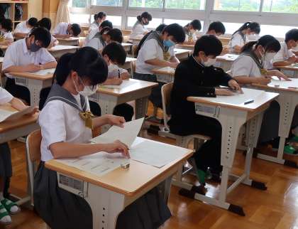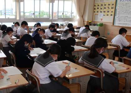 5月24、25日の両日で今年度最初の定期テストである前期前半テストが行われています。特に1年生にとっては初めての定期テストで不安もあることでしょう。24日の登校時に声を掛けた生徒からは、テスト勉強への不安を口にしつつも、どの生徒からも「がんばります!」と心強い言葉が返ってきました。テストが始まると、どの生徒も集中して取り組んでいました。これまでの取組を精一杯発揮できることを期待しています。