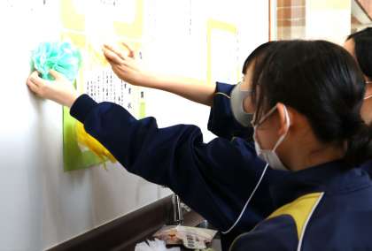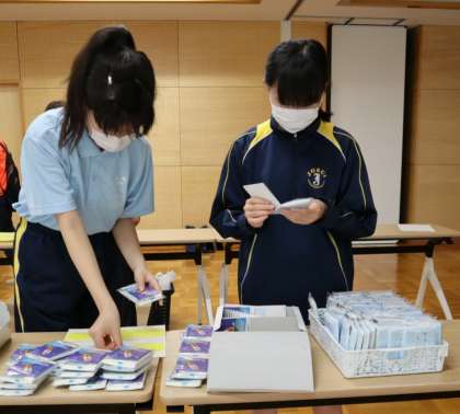 コロナ禍で例年のような社会を明るくする運動はできませんでしたが、ボランティア部は、発表予定だった生徒の作文を掲示したり、配布するための啓発グッズの準備の手伝いをしたりしました。