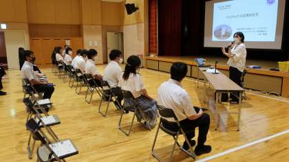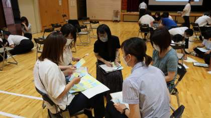 7月26日(月)と8月2日(月)に、外部の講師を招いて本校の職員の研修会を行いました。9月以降の授業に関連したものや長期休業中だからこそ落ち着いて取り組める内容を研修しています。講師の方のお話を聞くだけでなく、先生たちが生徒のつもりになって活動に取り組み、自分たちで考えを深めました。夏休み後半にも研修を予定しています。こうした研修を通して、今後の指導に役立てていきたいと思います。