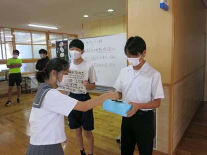 代表の子どもたちが、登校の時間に合わせて、各学年の踊り場で募金活動を行いました。どの学年も、多くの子どもたちが協力をしてくれて、たくさんの募金が集まりました。