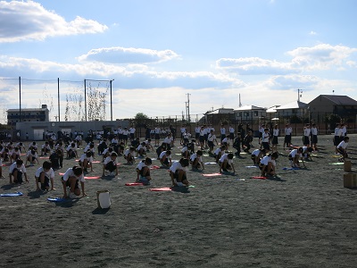 学年ごとに、長縄8の字跳び、浄水リレー、表現の3種目を行います。表現は、1年生が学年全体で「手旗」、2年生が学年全体で「ダンス」、そして、3年生は学級ごとに「水龍アピール」を行います。