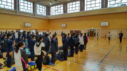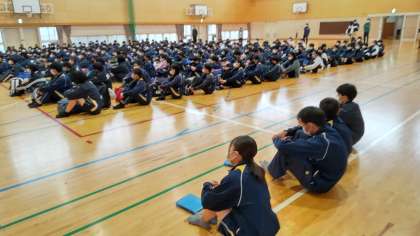 2年生が自然教室に出発しました。予定通り8時半から出発式を行い、みんな元気に出発しました。天気が少し心配ですが、素敵な思い出をたくさん作ってほしいと願っています。
