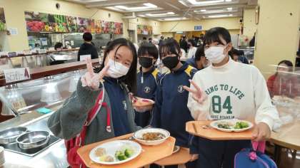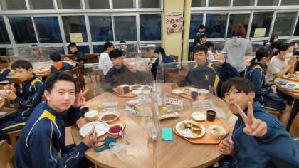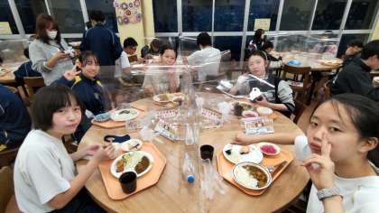 昼間の活動を終え、17時から食堂で夕食を食べました。コロナ対策のため、一つのテーブルの人数を少なくし、パーテーションが置かれていました。豊富なメニューで、子どもたちも喜んでいました。