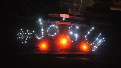 写真の「#JOSUI」の文字は、子どもたち全員で作った光の文字を上空から写したものです。