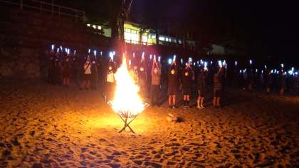 2日目最後の活動である「漁り火のつどい」を行いました。砂浜にともした火を囲んで、仲間との強い絆を確かめ合いました。